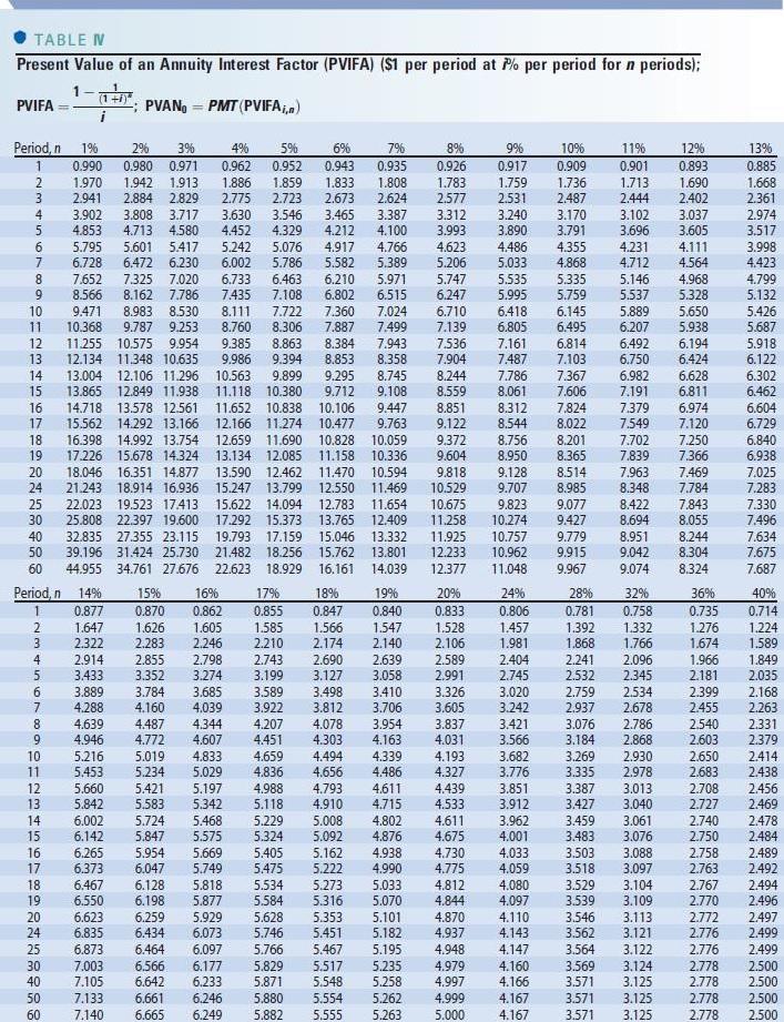 Using the formula above the PVIFA is determined to be 1-1085 08 3992. Here is the formula PVIFA 1- 1r -n r. Experts are tested by Chegg as specialists in their subject area.